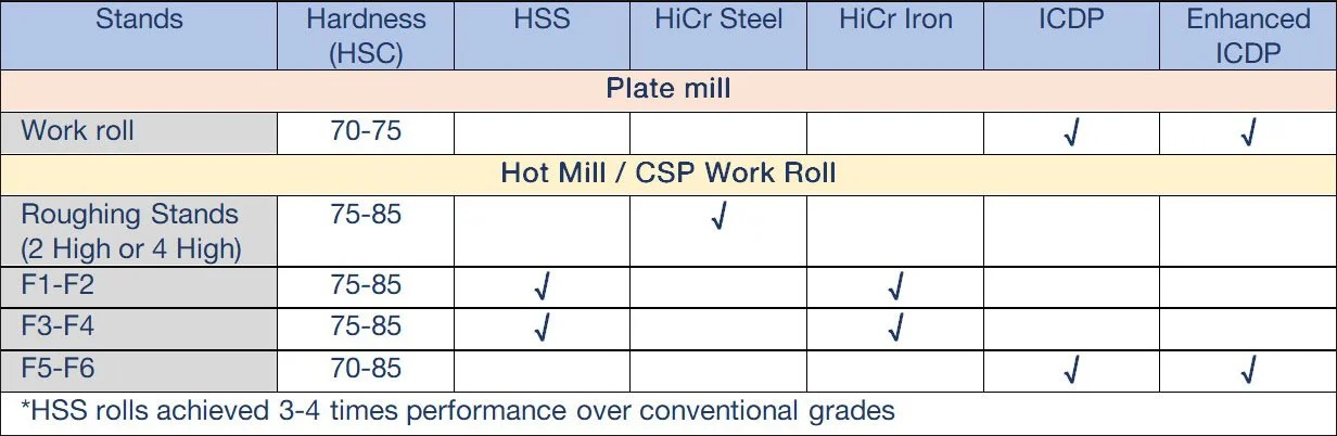 >>Work rolls apply in Plate mill, Hot mill and CSP mill<<