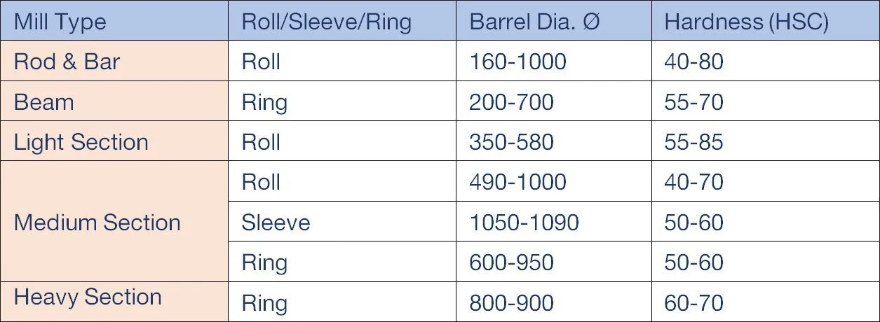 Our rolls have been developed to different grades by using specific casting process and composition of carbides to provide higher wear resistance while maintaining excellent mechanical properties.